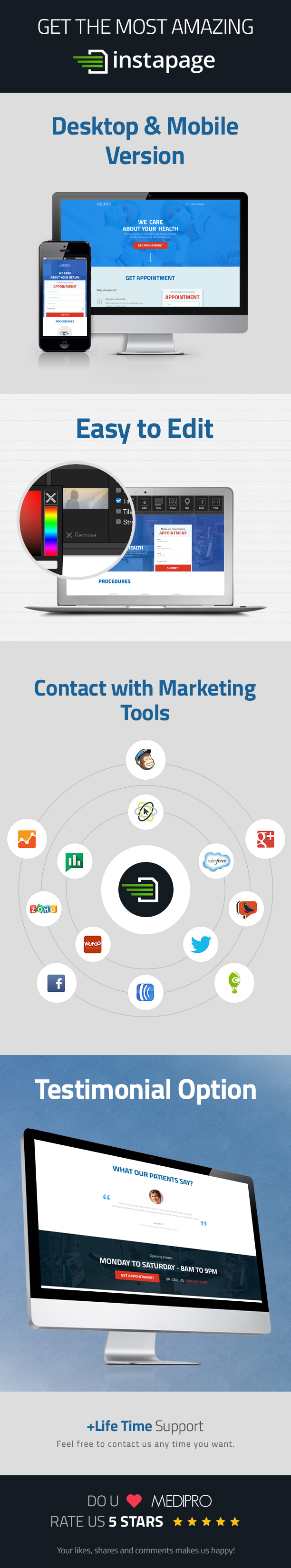 “Medipro” is a Medical Landing page template for Instapage have clean & modern design with a Call To Action button on top banner, you can create a template with in few clicks.
