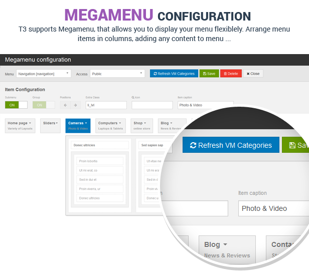 - Mega menu;